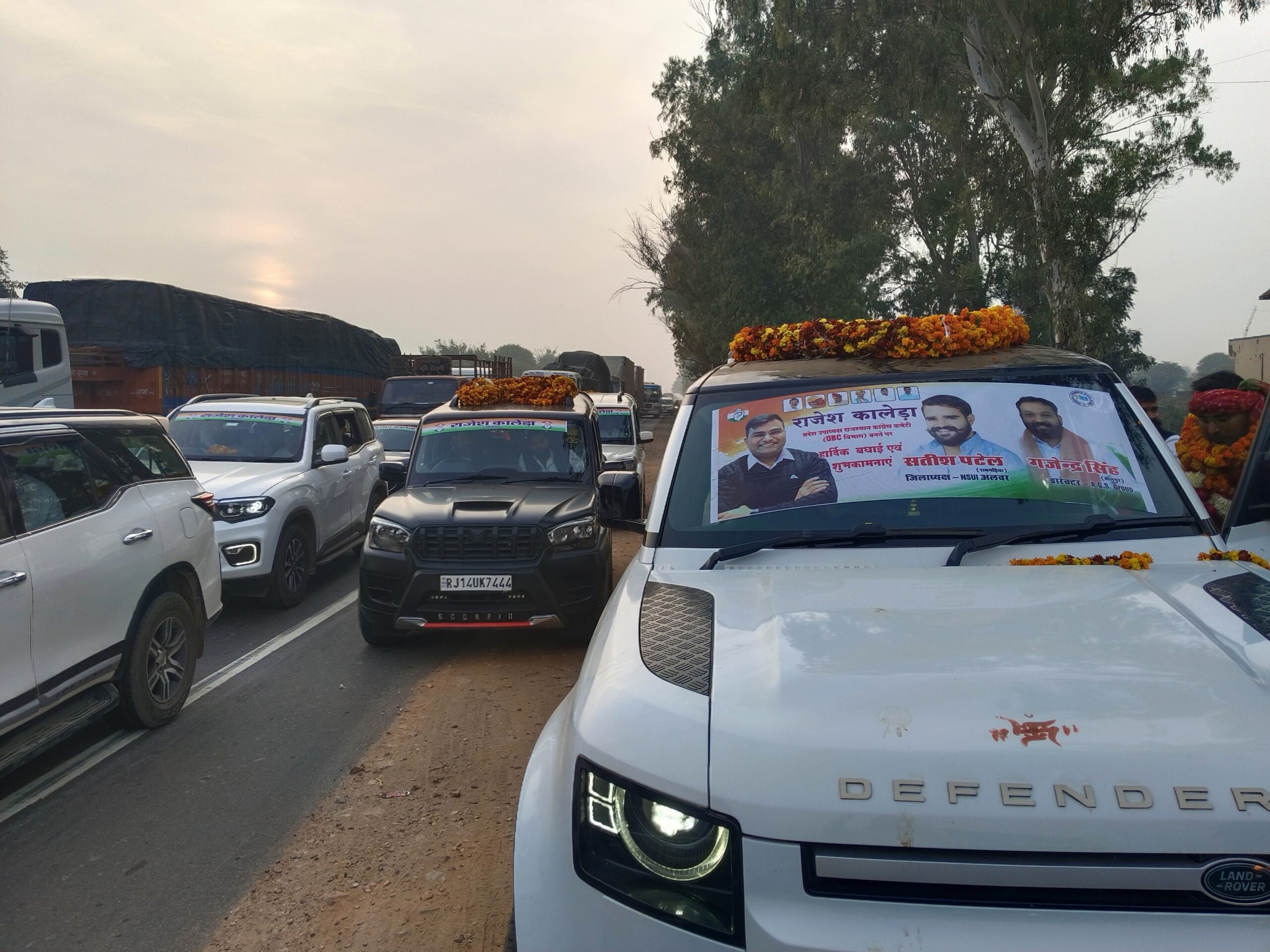 सैकड़ों गाड़ियों का काफिला, कांग्रेस शक्ति का प्रदर्शन मेहंदीपुर बालाजी पहुंचे राजेश कालेड़ा।