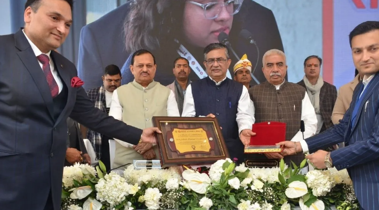 लैंडमार्क होटल में एमएसएमई के द्वारा आइपीओ जागरुकता कार्यक्रम में नेशनल स्टाक एक्सचेंज मुंबई के प्रबंध निदेशक एवं मुख्य कार्यकारी अधिकारी आशीषकुमार चौहान को प्रतीक चिह्न भेटे करते अभिषेक अग्रवाल व अर्पित अग्रवाल साथ में मौजूद एमएसएमई मंत्री राकेश सचान व सांसद रमेश अवस्थी । ( दाएं से बाएं )। जागरण
