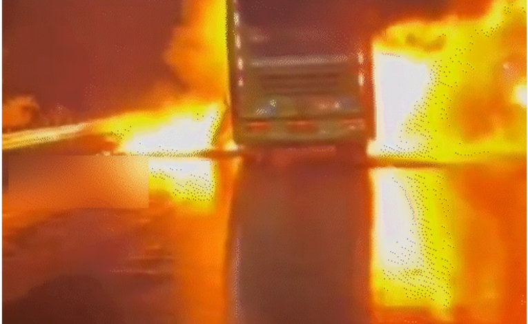 बस में आग लगने का वीडियो महामार्ग पर पीछे से आ रहे लोगों ने रिकॉर्ड किया।