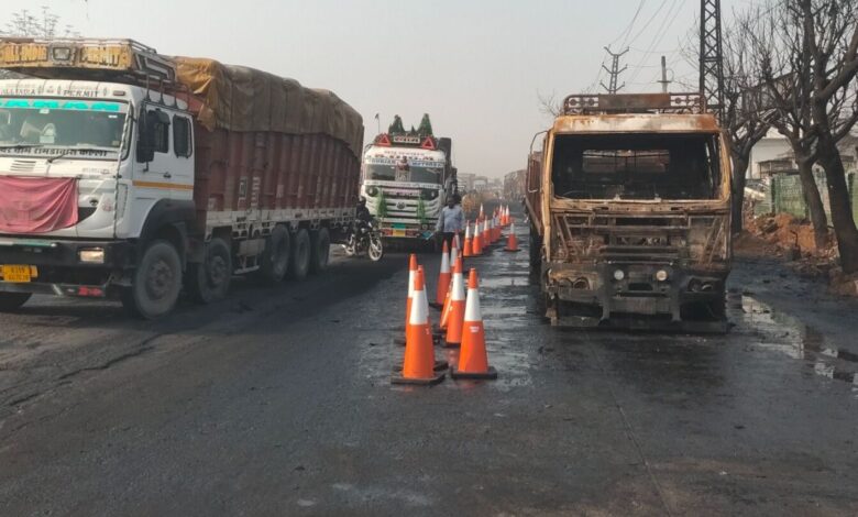 5 गाड़ियां जलीं, हाईवे पर तबाही का मंजर हादसे में पास खड़ी 5 अन्य गाड़ियां भी आग की चपेट में आ गईं। सड़क किनारे लगी दुकानें, ढाबे और पेड़ तक जल गए। हाईवे को तुरंत बंद कर दिया गया। ट्रैफिक 6 घंटे तक रुका रहा और सुबह 4.30 बजे जाकर दोबारा खोला गया।