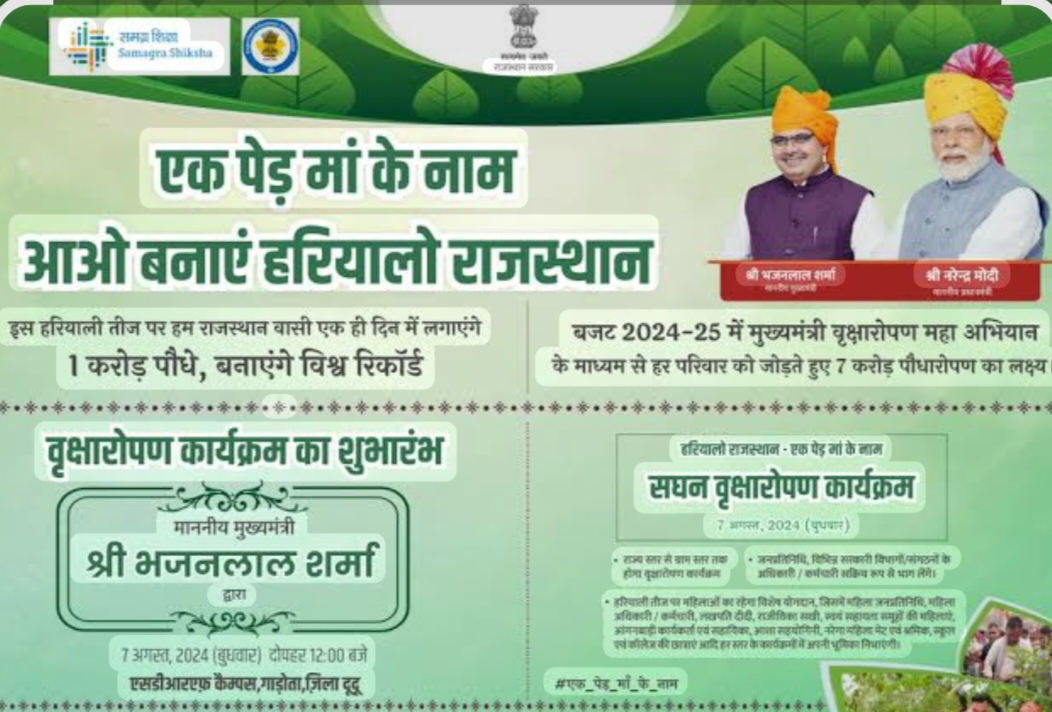 कार्यक्रम का शुभारंभ कर्नल राज्यवर्धन सिंह राठौड़, माननीय कैबिनेट मंत्री, राजस्थान सरकार द्वारा किया गया। उनके साथ देवेंद्र कुमार, जिला कलेक्टर, दौसा भी उपस्थित रहे। इस अवसर पर “एक पेड़ माँ के नाम” अभियान के तहत माननीय मंत्री जी एवं जिला कलेक्टर महोदय द्वारा पौधारोपण किया गया।