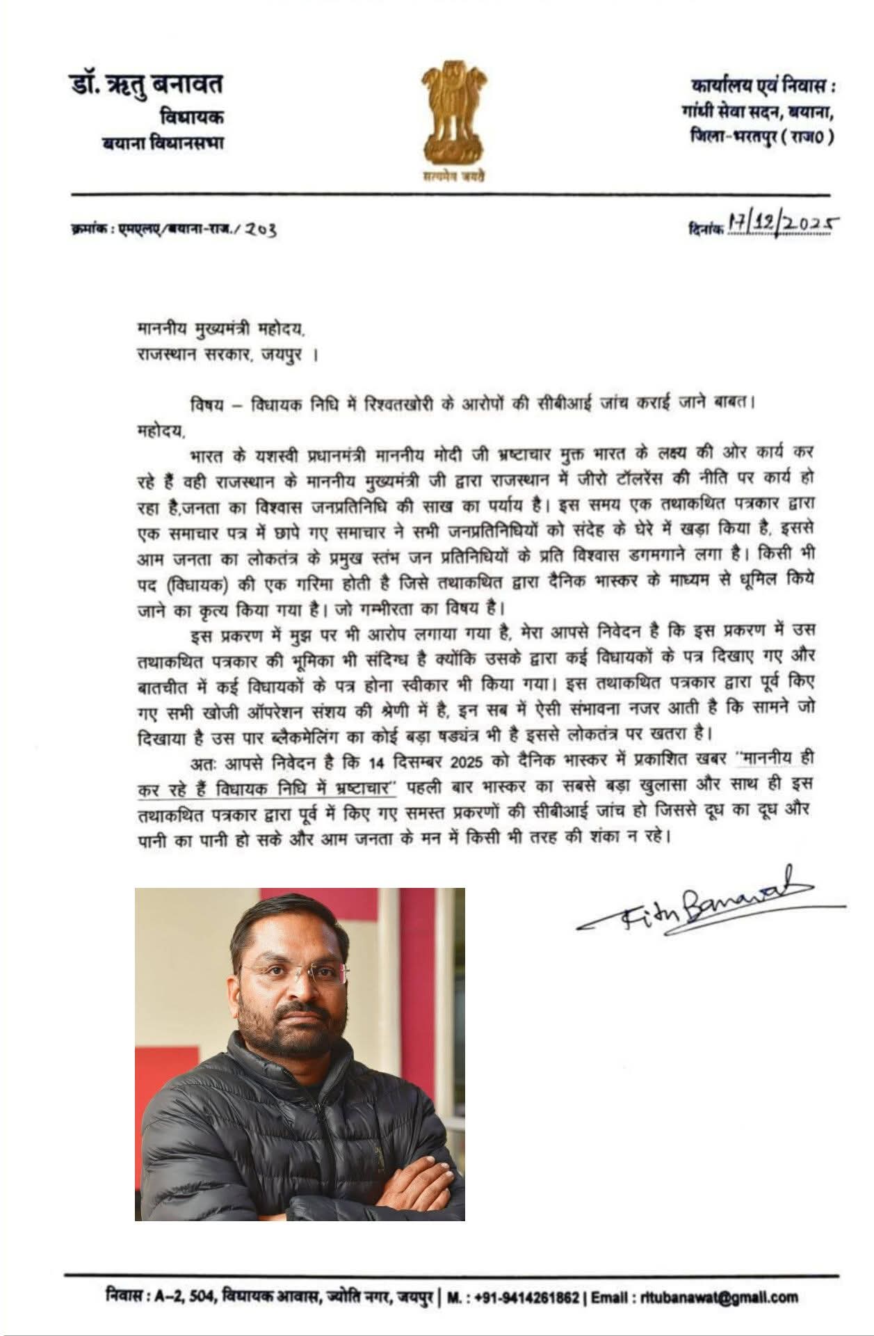 क्राइम इंडिया टीवी डिजिटल डेस्क। मनोज कुमार सोनी जयपुर भास्कर स्टिंग ऑपरेशन में नाम सामने आने के बाद बयाना विधायक ऋतु बानावत द्वारा केंद्रीय अन्वेषण ब्यूरो (CBI) जांच की मांग ने पूरे राजनीतिक और मीडिया जगत में भूचाल ला दिया है। इस मांग के बाद मामला सिर्फ विधायकों तक सीमित न रहकर स्टिंग करने वाले पत्रकार की भूमिका पर भी आकर टिक गया है।